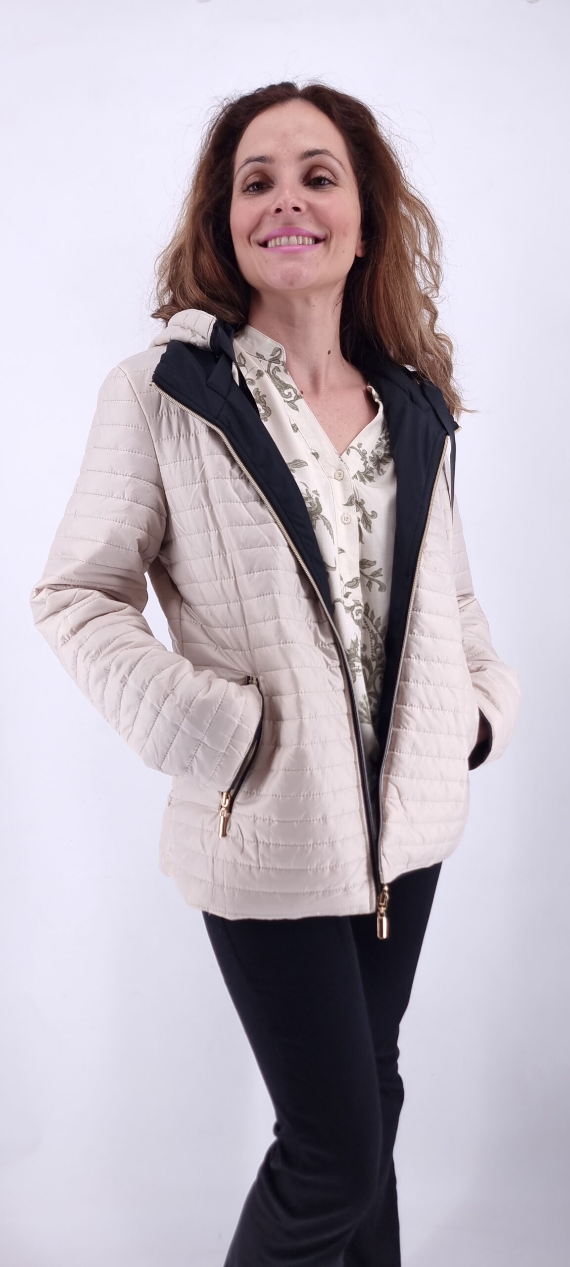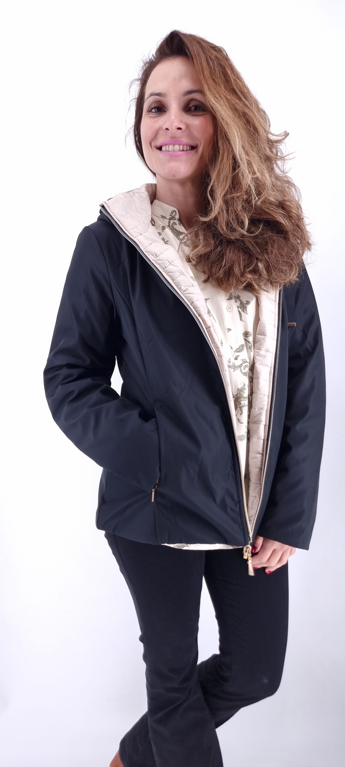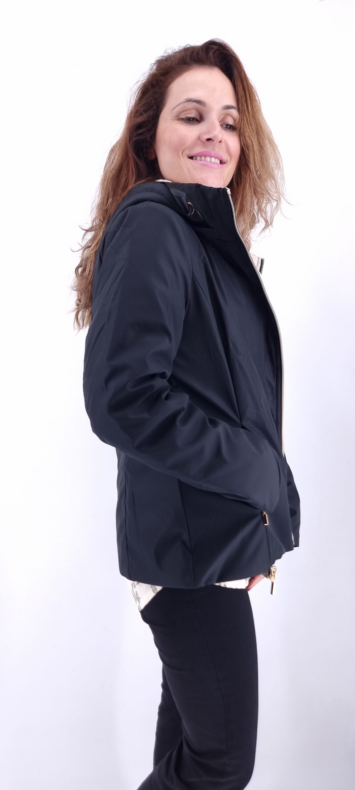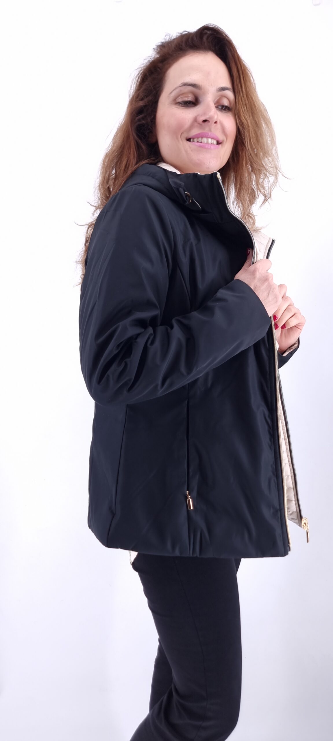 καπαρτινάκι διπλής όψης,αποσπώμενη κουκούλα με τσέπες μαύρο-μπεζ